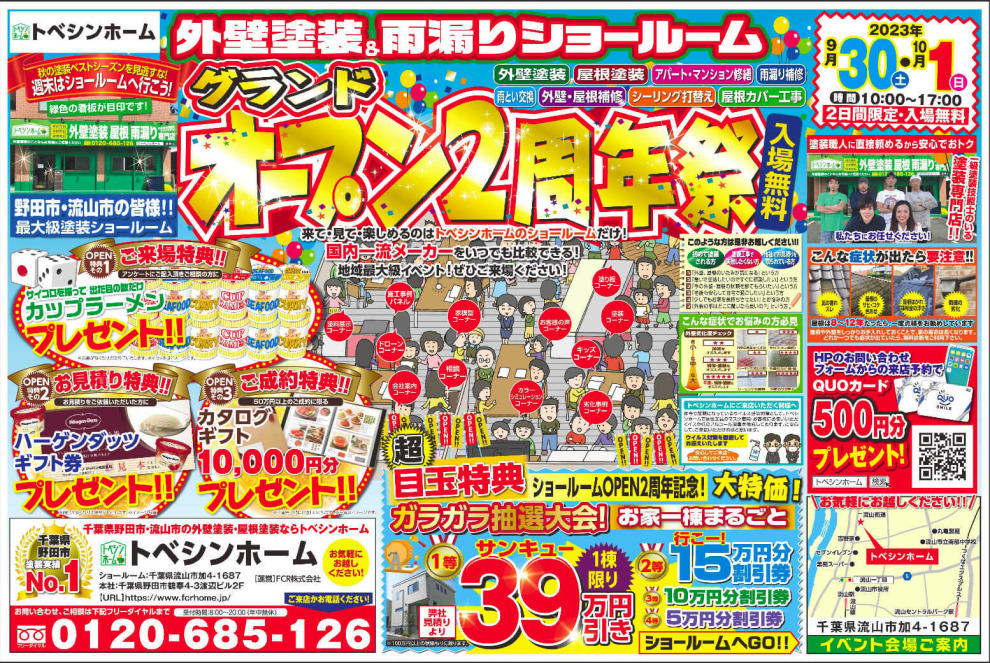 Deprecated: 関数 get_page_by_title は、バージョン 6.2.0 から非推奨になりました ! 代わりに WP_Query を使用してください。 in /home/fcr0402/tobeshinhome.com/public_html/staging/wp-includes/functions.php on line 5445 【ショールーム】グランドオープン2周年祭開催! - トベシンホーム